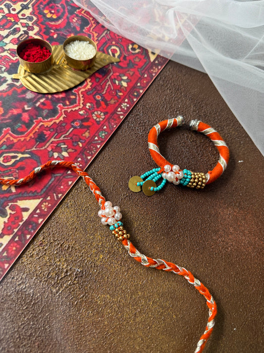 Orange Pearl Couple Rakhi